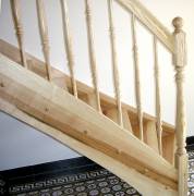 viertelgewendelte Holztreppe aus Eiche freitragende Bolzentreppe Eschentreppe mit gedrechseltem Geländer Eschentreppe einviertelgewendelt Massivholztreppe aus Esche, halbgewendelt Dekorative Holztreppe aus Weißbuche